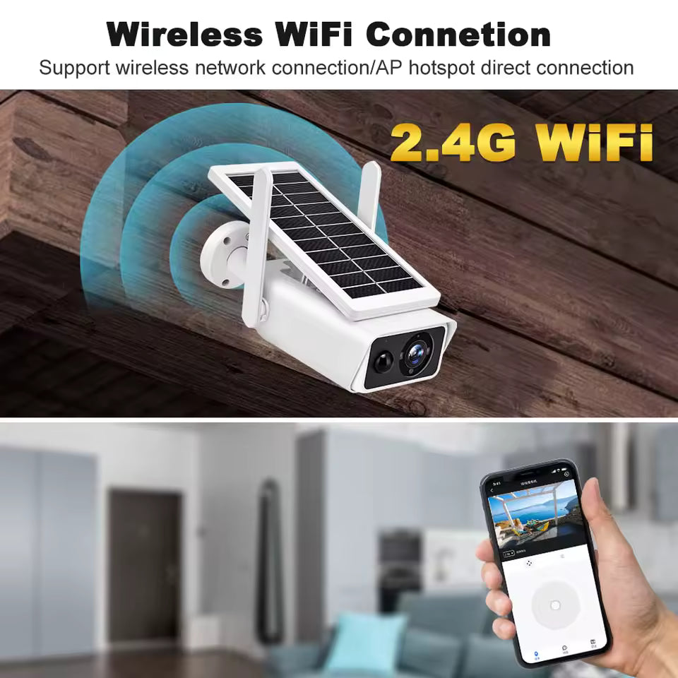 🌞 Energía solar + batería recargable para una vigilancia continua sin cables.