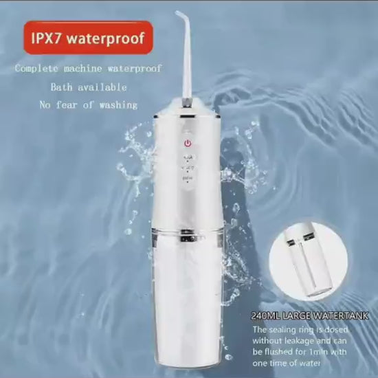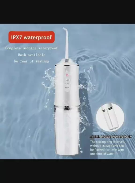 Mejorá tu higiene dental con este irrigador bucal portátil y recargable, diseñado para ofrecer una limpieza eficaz incluso en zonas difíciles de alcanzar. Su clasificación IPX7 impermeable permite usarlo con total seguridad en el baño o la ducha, y su diseño ergonómico lo hace ideal para el hogar o viajes.